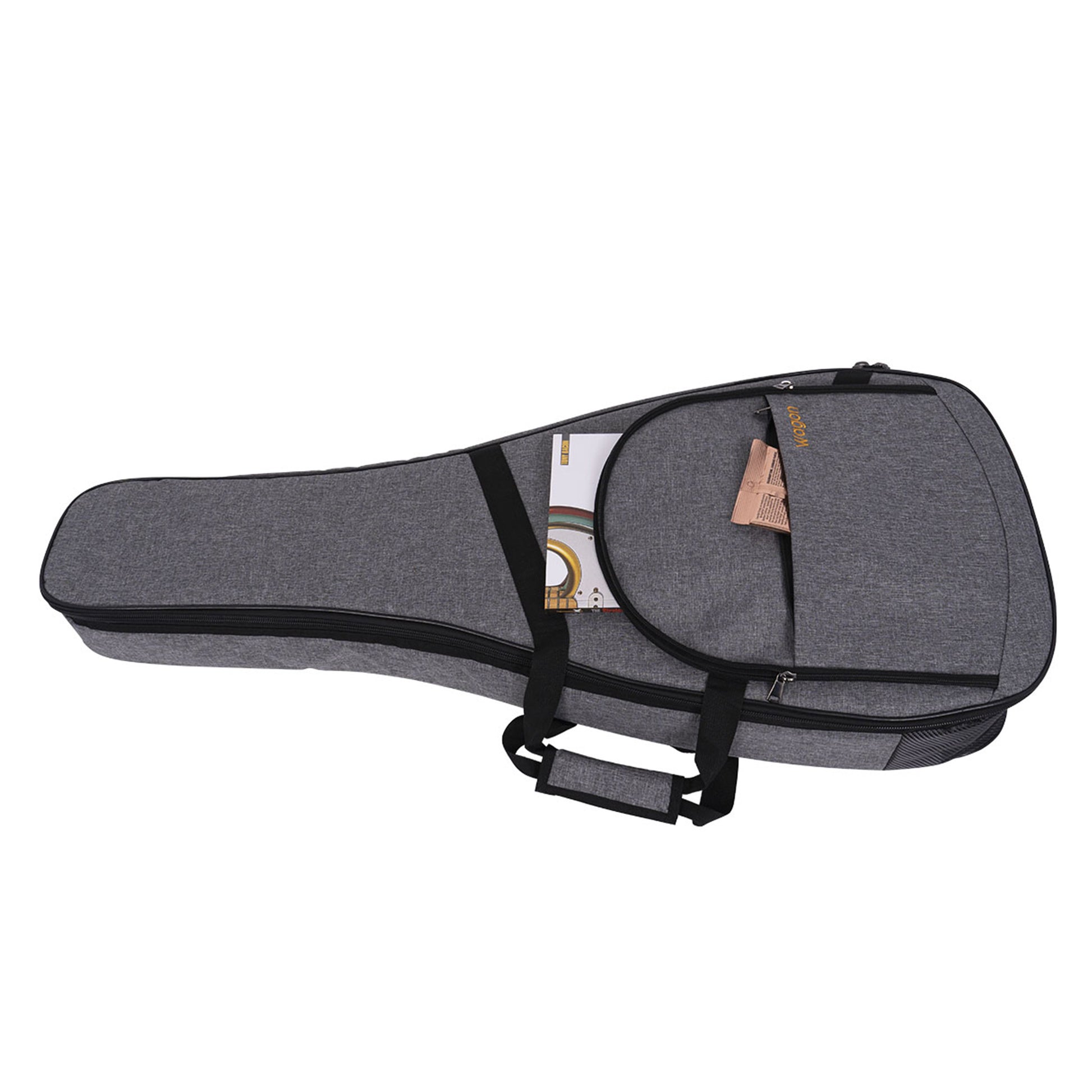 Equipped with a 15mm padding, this bag offers exceptional protection to your guitar while maintaining a lightweight and portable design. It features two spacious front pockets, allowing you to conveniently store accessories and personal items such as picks, strings, and more.